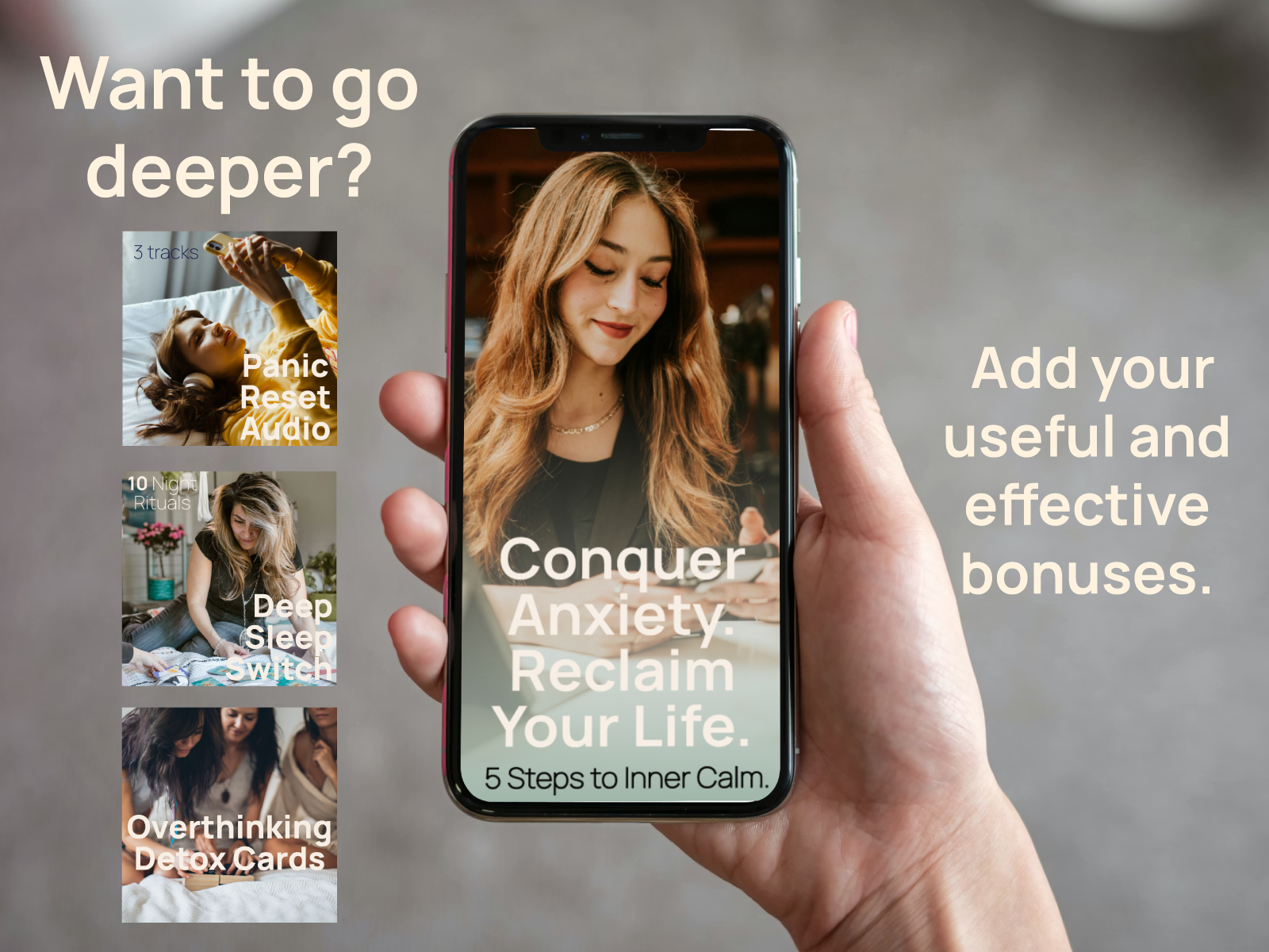 That’s perfectly fine! The main PDF alone is complete and designed to bring calm and clarity. The other tools are optional — they just help deepen and accelerate your results. You can add them now or later, whatever feels right for you.